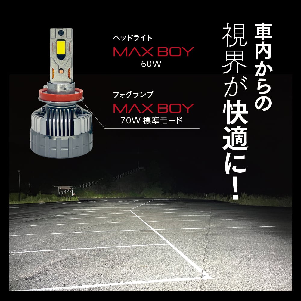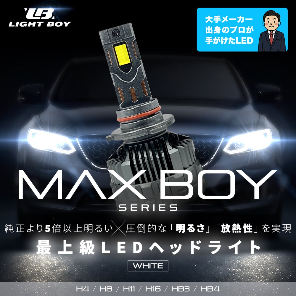 【MAX BOY】 LEDヘッドライト 最上級の明るさ H4 H8 H11 H16 HB3 HB4 ホワイト 爆光 車検対応 切り替え 1年保証 フォグ ライトボーイ マックスボーイ