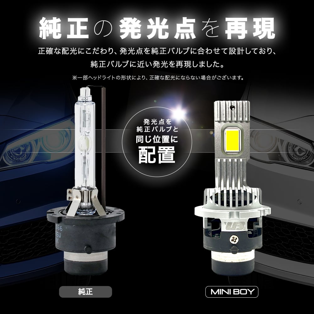 【MINI BOY】LEDヘッドライト 最上級の明るさ D2S D2R D4S D4R ホワイト 爆光 純正 HID LED化 車検対応 1年保証 フォグ ライトボーイ ミニボーイ